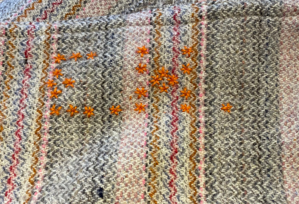 Initials can been seen embroidered in one corner E H. - Elin Hughes ?
