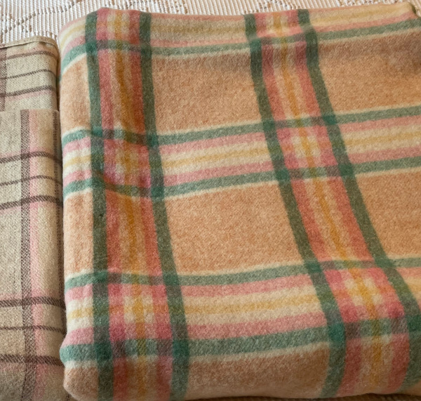 Soft plaid Welsh blanket from mid twentieth century.